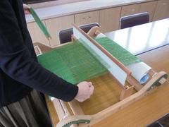 大物に挑戦したい方は、のれんや間仕切り ( スペースデバイザー )、夏用のストールやテーブルランナー・テーブルセンター 等、各自のレベルに合わせて織るものを選びます。